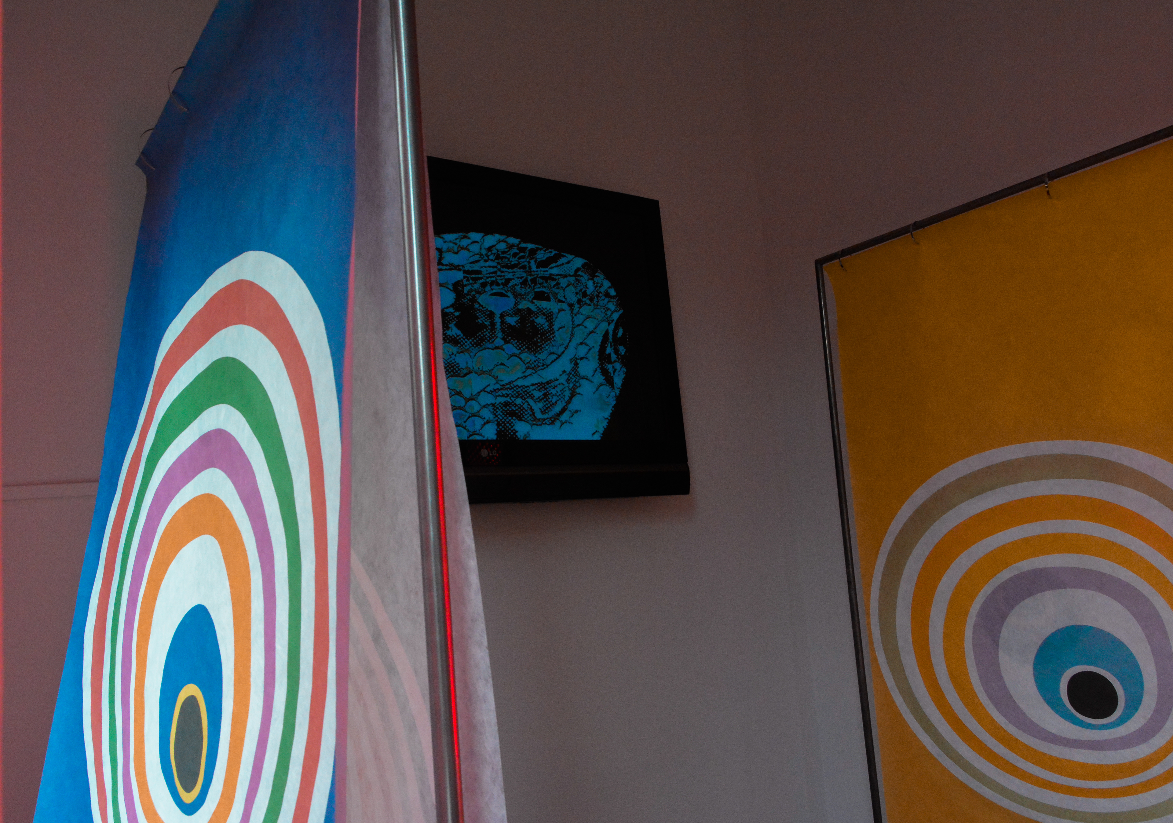 (2024) concrete, steel tubing, steel cable ties, and prints on mulberry paper